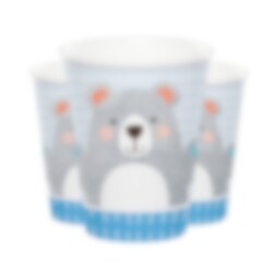 8 st. pappersmuggar i grått, vitt och blåa nyanser med motiv av söta björnar. Använd de här muggarna när det är dags för barnkalas med björntema. Muggarna är ca 10 cm höga och rymmer ca 266 ml.