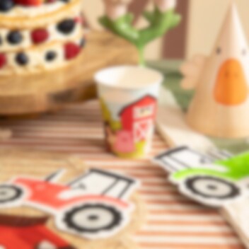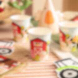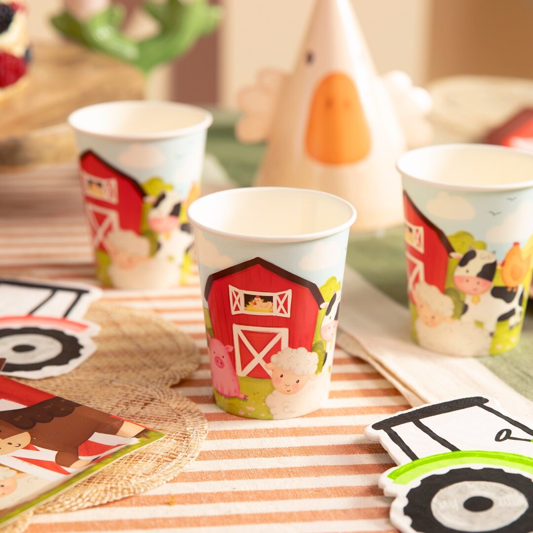 6 st. pappmuggar i bondgårdstema som gör dukningen extra lekfull till barnkalaset. Muggarna pryds av gulliga bondgårdsdjur, en röd lada och ett lantligt motiv som passar perfekt till ett kalas med bondgårdstema.