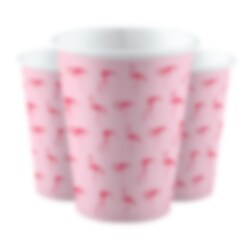 8 st. pappmuggar i rosa färg med motiv av flamingos. Muggarna är ca 10 cm höga och rymmer ca 250 ml.