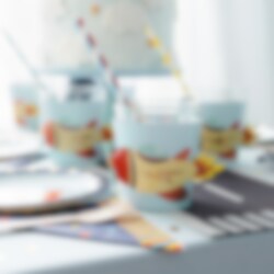 Kreativa DIY muggöverdrag med flygplanstema. Varje förpackning innehåller sex justerbara överdrag av papp. De är perfekta för att dekorera muggar eller dricksglas och göra varje dryck till en del av kalasets tema. Storlek: 23 x 9,5 cm.