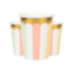 8 st. pappmuggar i vackra pastellfärger och guldfolierade kanter. Fina att duka fram inför kalaset med Ice Cream Party som tema. Muggarna är ca 10 cm höga och rymmer ca 266 ml.