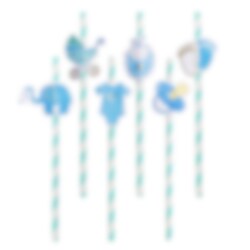 8 st. pappsugrör i roligt blått babyshowertema. Sugrören är ca 20 cm långa och är dekorerade med nappar, babyfötter, barnvagnar och babykläder.