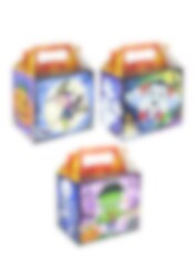 Tjusig partybox i tre olika designutföranden i Halloweentema. Perfekta att lägga godis och leksaker i till kalaset. Partyboxen är gjord av kartong och viks enkelt ihop.