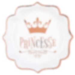 10 st. formade papptallrikar i vit färg med roséguldfolierade kanter och med motiv av fina prinsessdetaljer och texten "Princess" i roséguldfolie. Perfekta att duka fram på bordet inför prinsesskalaset.