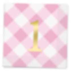 16 st. servetter i ett fint rosa- och vitrutigt mönster med motiv av en guldfolierad etta i mitten. Tjusiga att duka fram till 1-års kalaset. Servetterna är 2-lagers och är ca 33 x 33 cm stora utvikta.