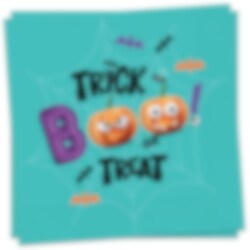20 st. servetter i en fin turkos färg med coola halloween motiv och texten ''Trick or Treat''. Servetterna är 3-lags och 33 x 33 cm stora utvikta.