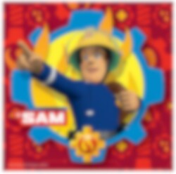 20 st. servetter med motiv av den modige brandmannen Sam. Servetterna är 2 lagers, ca 33 x 33 cm.