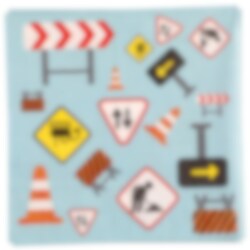 20 st. blå servetter med roliga motiv av olika vägskyltar. Väldigt dekorativa till ett barnkalas med fordonstema. Servetterna har 3-lager och är ca 33 x 33 cm stora utvikta.
