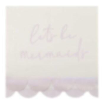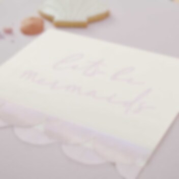 16 st. ljusrosa servetter med pärlemorskimrande fransar som efterliknar fjäll och som har motiv av texten "Let's be mermaids" i en rosa färg på mitten. Läckra att ha med till dukningen till sjöjungfrukalaset.