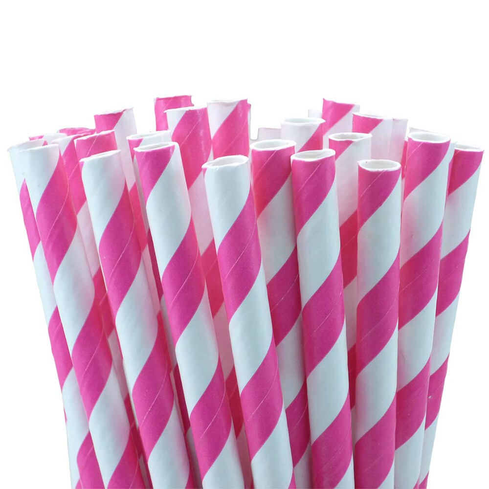 Pappsugrör - Randiga Ljusrosa 10-pack