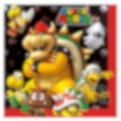 16 st. servetter med motiv av Bowser och hans medhjälpare från den roliga spelserien Super Mario Bros. Ha servetterna framme vid bordet när det är dags att äta god tårta. Servetterna är 2 lagers, ca 33 x 33 cm.