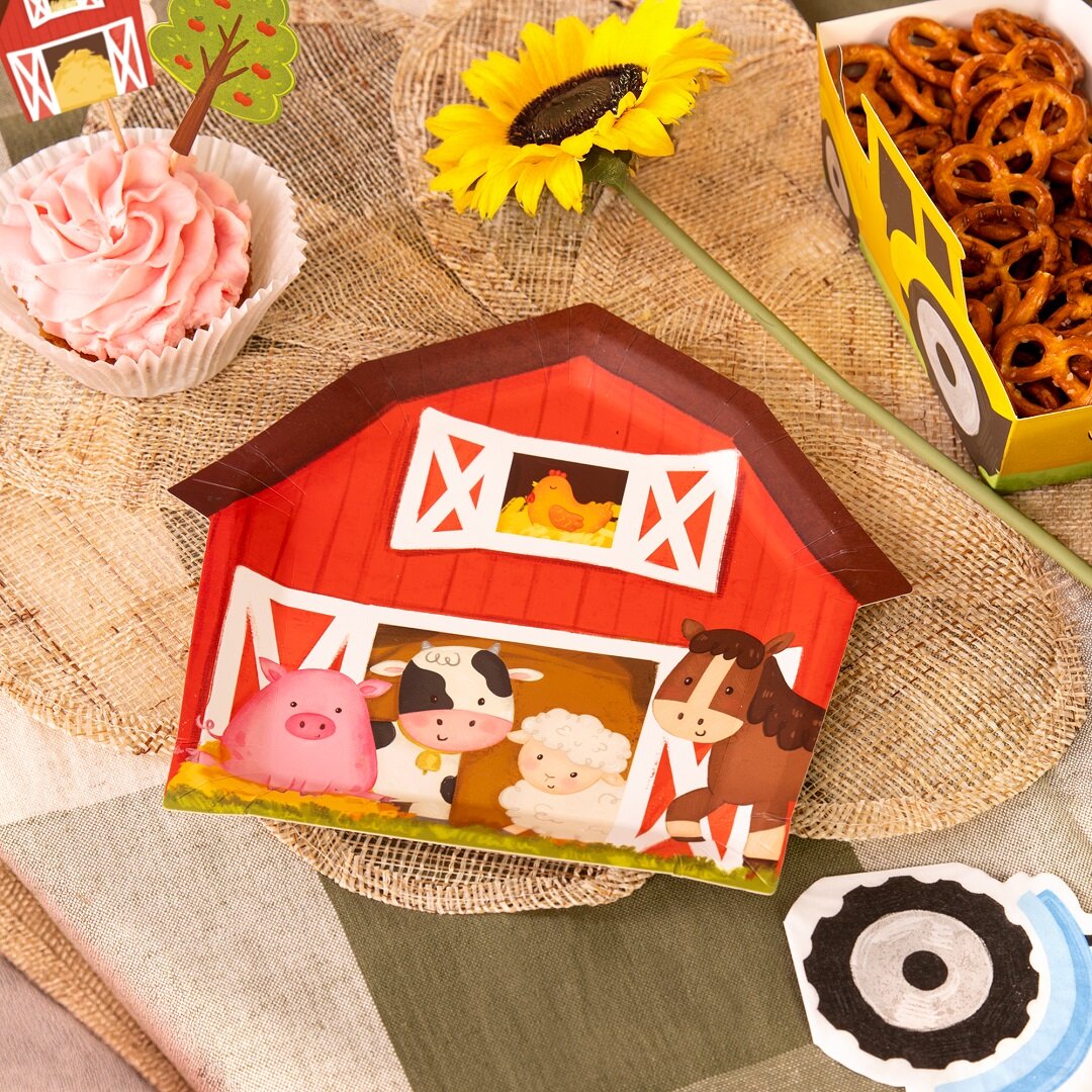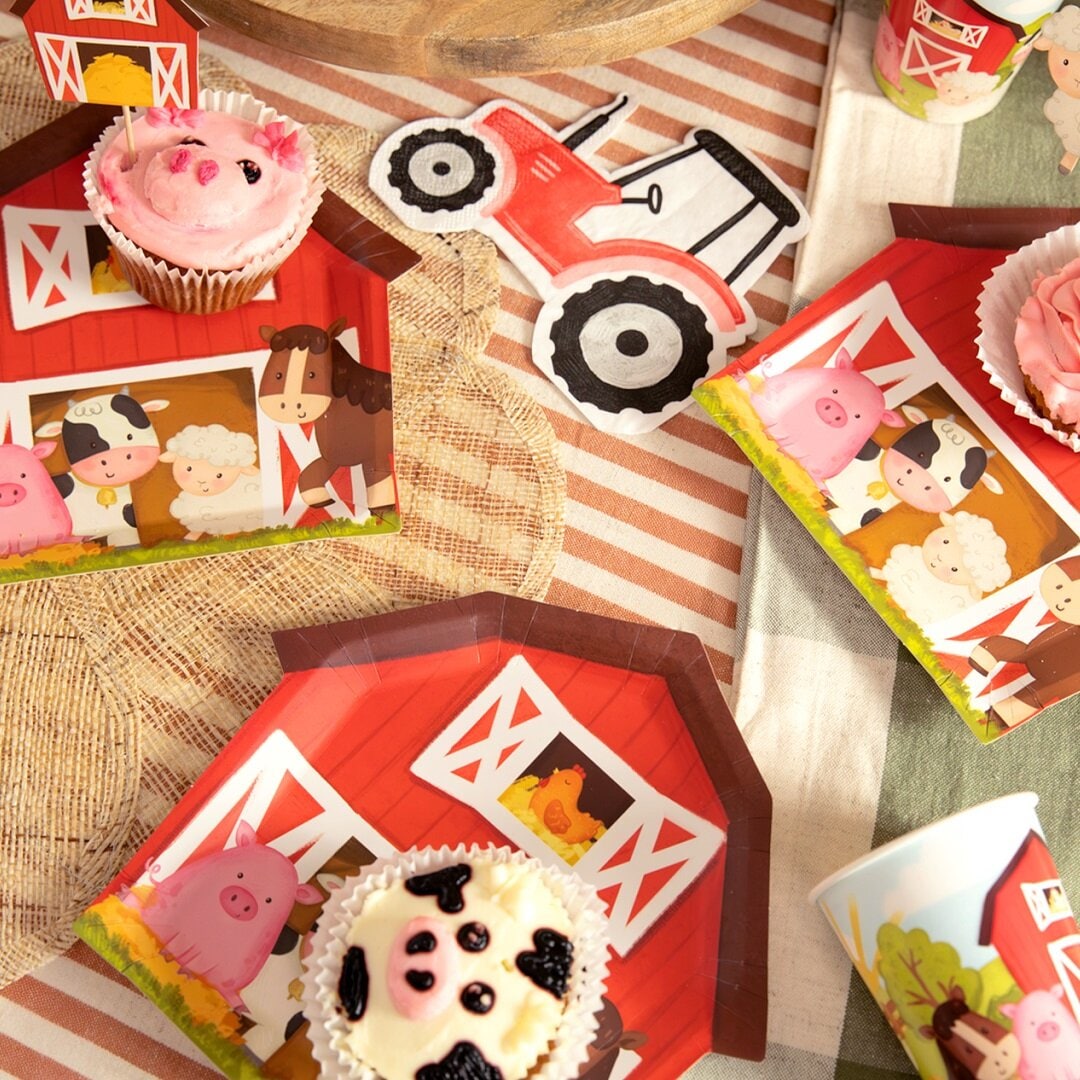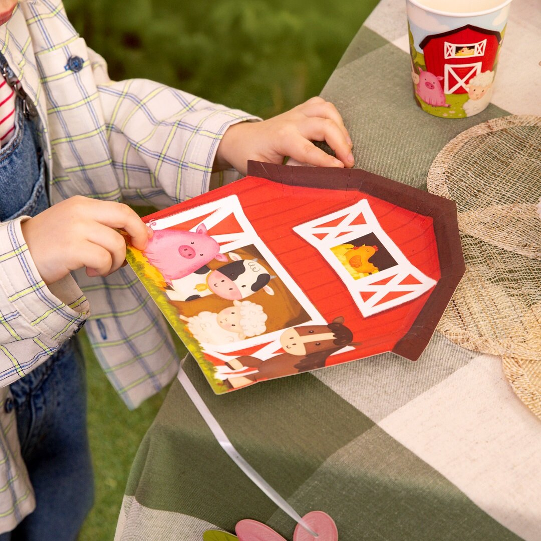 6 st. papptallrikar i bondgårdstema som gör dukningen extra rolig till barnkalaset. Tallrikarna är formade som en röd lada och pryds av gulliga bondgårdsdjur som gris, ko, får och häst, vilket gör dem till en lekfull detalj på kalasbordet.