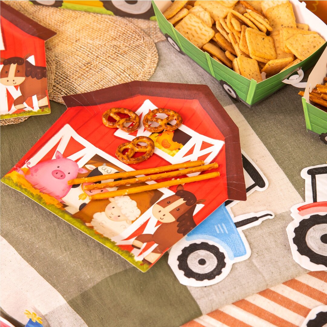 De passar perfekt till födelsedagskalas med bondgårdstema och är fina att servera tårta, snacks och andra godsaker på. Tallrikarna är 20 x 20 cm stora.