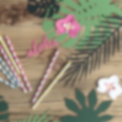 Stort gör-det-själv dekorationskit i tema Aloha. En förpackning innehåller totalt 21 st tropiska blad att dekorera med till kalas och fest. Bladen är i 7 olika former och storlekar och 3 olika nyanser av grönt. Kombinera gärna med andra blommor och blad från samma tema.