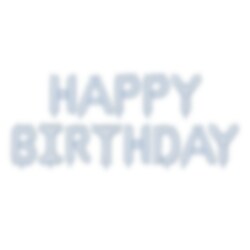 Jättefin ballonggirlang som bildar orden "Happy Birthday" i vacker ljusblå färg. Girlangen är 340 cm lång och varje ballong är 35 cm hög. Ballongerna har en självslutande ventil, och du kan enkelt blåsa upp dem med en ballongpump eller med det medföljande sugröret.
