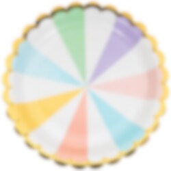 8 st. papptallrikar i härliga pastellfärger samt guldfolierade kanter från det fina temat Ice Cream Party. Tjusiga att duka fram inför varje kalas. Tallrikarna är ca 23 cm i diameter.