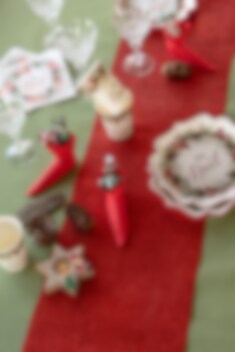 Glittrande bordslöpare i rött att ha på bordet när det är dags för fest. Bordslöparen är 28 bred och 3 meter lång och är tillverkad i polyester.