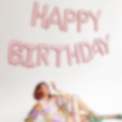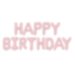 Jättefin ballonggirlang som bildar orden "Happy Birthday" i vacker ljusrosa färg. Girlangen är 340 cm lång och varje ballong är 35 cm hög. Ballongerna har en självslutande ventil, och du kan enkelt blåsa upp dem med en ballongpump eller med det medföljande sugröret.