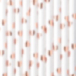 10 st. snygga papperssugrör i vitt och med motiv av söta så roséguldhjärtan. Superfina att duka med till ditt barnkalas, babyshower eller annan festlig tillställning. Snygga att matcha ihop med andra kalastillbehör som är i roséguld folierat. Sugrören är ca 19,5 cm höga.