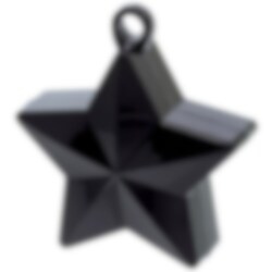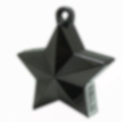 Svart stjärnformad ballongvikt i metallicfärg för att hålla dina ballonger upplåsta med helium kvar på jorden. Ballongvikten väger ca 170 gram och har en kapacitet på ca 30 st. latexballonger eller 8-10 st. siffer- eller bokstavsballonger.