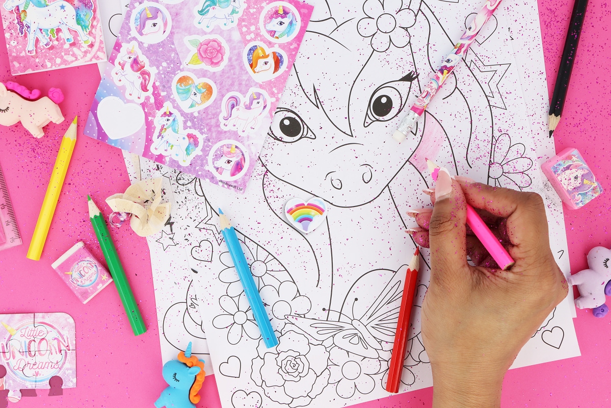 Ett komplett och roligt målarset med enhörningstema som håller barnen sysselsatta en bra stund. Perfekt som aktivitet under kalaset eller som en fin födelsedagspresent till den lilla enhörningsfantasten. Här finns allt som behövs för att börja färglägga direkt, med fina enhörningar, regnbågar och diamanter.