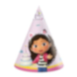 6 st. kalashattar med motiv av Gabby. Roliga att ha till ditt kalas med Gabby's Dockskåp-tema.