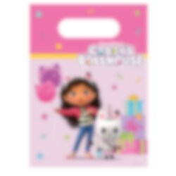 6 st. kalaspåsar av plast med gulliga motiv från Gabby's Dockskåp, som Gabby, Kitty Fairy och färgglada ballonger. Perfekta att fylla med godis, små leksaker eller roliga överraskningar som barnen får ta med sig hem från kalaset. ✔️ Storlek: ca 23 x 16 cm