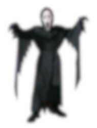 - Innehåller: En kappa med huva och ärmar, ett svart bälte och en Ghost Face ansiktsmask.