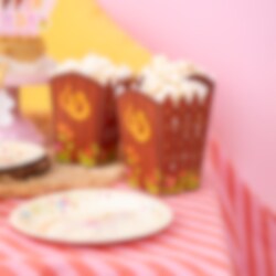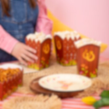 Skapa en lantlig och charmig känsla på kalaset med dessa fina popcornboxar med hästtema. Med ett tryck som påminner om en stallvägg, prydd med hästskor och blomster, passar de perfekt för små ryttare och hästälskare.