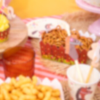 Duka upp till ett riktigt hästfestligt kalas med dessa charmiga snacksboxar i trästaketsdesign. Med detaljer som hästskor, blommor och lantlig känsla passar de perfekt till chips, popcorn eller fruktbitar under ett stallinspirerat firande.