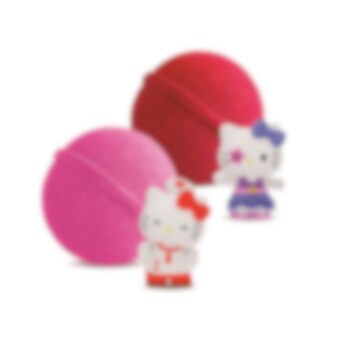 Rolig badbomb med härlig vattenmelonsarom och som färgar badvattnet rosa. Inuti badbomben finns även en överraskning i form av en Hello Kitty-figur som föreställer 1 av 6 olika karaktärer. Missfärgar varken hud, hår eller badkaret!