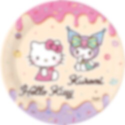 8 st. färgglada tallrikar med motiv av Hello Kitty och Kuromi, perfekta för att skapa en söt och lekfull dukning på kalaset. De fina pastellfärgerna och de festliga detaljerna med glass och strössel gör att tallrikarna blir en riktig blickfångare på bordet.