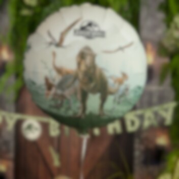 Ta med gästerna på ett förhistoriskt äventyr med denna spännande Jurassic World folieballong! Här möts du av mäktiga dinosaurier som T-Rex och flygande Pteranodoner, redo att väcka kalaset till liv.