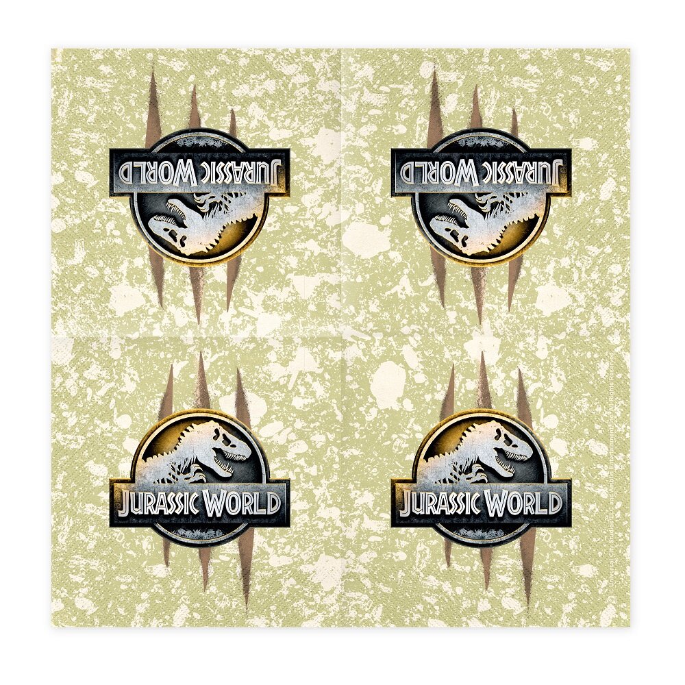 Kliv in i en värld av dinosaurier och äventyr med dessa imponerande servetter från Jurassic World. Servetterna pryds av det ikoniska T-Rex-motivet tillsammans med råa klomärken mot en jordnära bakgrund, vilket sätter stämningen för kalaset.