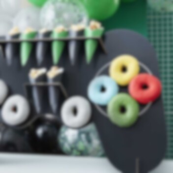Tufft ställ för dina Donuts och snacks från kollektionen Game On. Denna ställning formad som en spelkontroll kommer garanterat att dra till sig gästernas uppmärksamhet på kalaset, festen eller på en annan rolig tillställning.