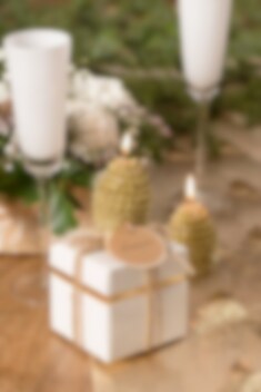 Detta eleganta ljus är perfekt som juldekoration och ger en extra gnistrande känsla till bordet när julen närmar sig. Ljuset är format som en klassisk kotte i guldfärg och blir ett vackert inslag i juldukningen eller som en stämningsfull dekoration i hemmet.