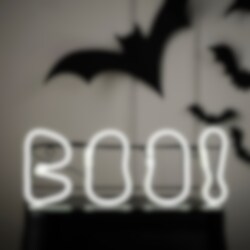 Ge rummet ett spöklikt sken med vårt fina Boo Halloween neonljus. Placera den glödande neonskylten på manteln, häng den på väggen eller i fönstret för att lysa upp natten. Boo-belysningen är ca 10 cm hög och 32 cm bred.