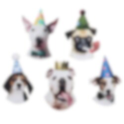 Rolig konfetti med olika hundmotiv som passar perfekt till födelsedagskalas, fest och andra firanden med färgstark dukning. De festklädda hundarna med kalashattar, glasögon och kronor blir en lekfull detalj på bordet och hjälper till att skapa rätt partystämning.