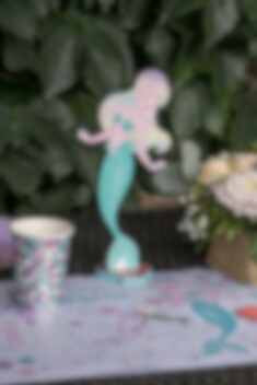 Fin bordsdekoration i trä med en vacker sjöjungfru. En underbar dekoration och detalj som passar perfekt på det dukade bordet. Figuren sitter på en träplatta som gör att den står stabilt och efter kalaset kan den användas som en inredningsdetalj i barnrummet.