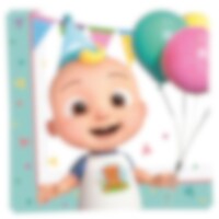 20 st servetter med färgglatt Cocomelon-motiv som gör dukningen extra festlig. Servetterna är 2-lagers och ca 33 x 33 cm stora utvikta.