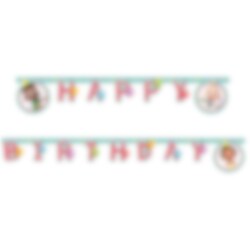 Fin girlang av papper med texten "Happy Birthday" och motiv från Cocomelon. Dekorerad med söta detaljer från Cocomelons färgglada värld. Perfekt för att skapa en kul och festlig stämning vid födelsedagsfirandet! Girlangen är 2 meter lång.