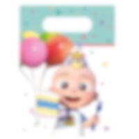 4 st. kalaspåsar av papper med ett härligt Cocomelon-motiv där JJ firar med ballonger och en tårtbit. Perfekta att fylla med godis, små leksaker eller överraskningar som barnen kan ta med sig hem efter kalaset. ✔️ Storlek: ca 22 x 13 cm ✔️ Tillverkade av miljövänligt FSC-certifierat papper