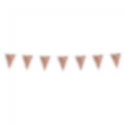 Rose Gold mini flaggirlang. Flaggirlangen är en jättefin dekoration att hänga över kalasbordet, i fönstret eller i hallen för att välkomna gästerna. Girlangen är av plast och består av 12 st flaggvimplar som är ca 14 cm höga. Girlangen är ca 3 m lång.