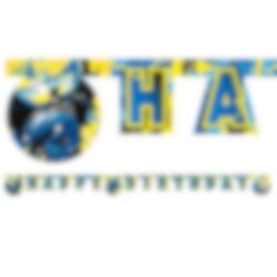 Tuff girlang i färgerna mörkblå, gul och svart med texten Happy Birthday och med snyggt Batman motiv. En tjusig dekoration till Batman kalaset. Girlangen är ca 2 m lång.