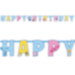 Blues Clues girlang i papp med texten Happy Birthday. Girlangen är 170 cm lång och varje bokstav är ca 15 cm hög.