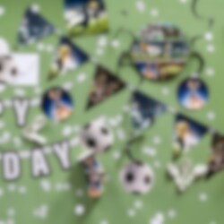 Dekorera ditt fotbollskalas med denna dekorativa flaggirlang av papp med coola fotbolls-motiv. Med en längd på hela 4 meter och 15 vimplar skapar denna girlang en festlig stämning.