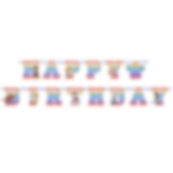 Snygg Happy Birthday girlang med motiv av dom olika hundarna från Paw Patrol. Girlangen är 180 meter lång och varje bokstav är ca 15 cm hög.