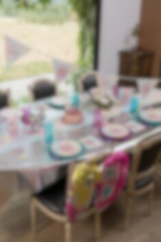 Färgsprakande bordslöpare med mönster av en gullig enhörning och små detaljer så som hjärtan och stjärnor. Fin att duka bordet med till ditt barnkalas med enhörningstema. Bordslöparen är i materialet polyester och är ca 30 cm bred och 5 meter lång.