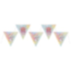 Girlang med gulliga motiv av älvor och enhörningar. Fin att hänga upp i rummet när det är dags för barnkalas. Girlangen är 5 meter lång och har 10 vimplar av papp som är 20 x 22 cm stora.