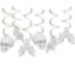 Skapa rätt stämning till halloweenfesten med dessa kusliga dekorationer från serien Creepy Curiosities! Setet innehåller sex hängande spiraler i guld med detaljerade pappmotiv av fladdermöss, dödskallar och andra rysliga figurer.